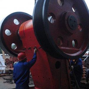 顎式破碎機(jī)俗稱顎破,又名老虎口。由動顎和靜顎兩塊顎板組成破碎腔,模擬動物的兩顎運(yùn)動而完成物料破碎作業(yè)的破碎機(jī)。顎式破碎機(jī)在礦山、建材、基建等部門主要用作粗碎機(jī)和中碎機(jī)。按照進(jìn)料口寬度大小來分為大、中、小型三種,進(jìn)料口寬度大于600MM的為大型機(jī)器,進(jìn)料口寬度在300-600MM的為中型機(jī),進(jìn)料口寬度小于300MM的為小型機(jī)。顎式破碎機(jī)結(jié)構(gòu)簡單,制造容易,工作可靠。顎式破碎機(jī)的工作部分是兩塊顎板,一是固定顎板(定顎),垂直(或上端略外傾)固定在機(jī)體前壁上,另一是活動顎板(動顎),位置傾斜,與固定顎板形成上大下小的破碎腔(工作腔)?;顒宇€板對著固定顎板做周期性的往復(fù)運(yùn)動,時(shí)而分開,時(shí)而靠近。分開時(shí),物料進(jìn)入破碎腔,成品從下部卸出;靠近時(shí),使裝在兩塊顎板之間的物料受到擠壓,彎折和劈裂作用而破碎。